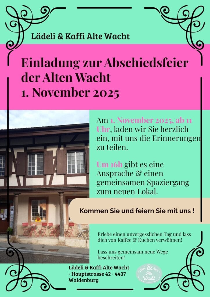 Die Verabschiedung in der Alten Wacht und die Neueröffnung an der Hauptstrasse 72 in Waldenburg!